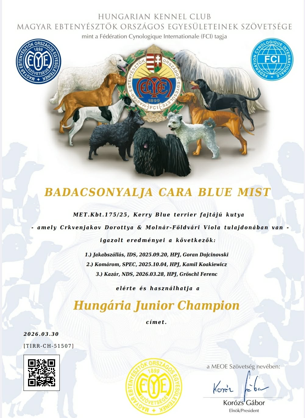 Ărömmel osztjuk meg, hogy fiatal szukĂĄnk, Cara Blue Mist, kiemelkedĆ eredmĂ©nyeket Ă©rt el a kiĂĄllĂtĂĄsokon: